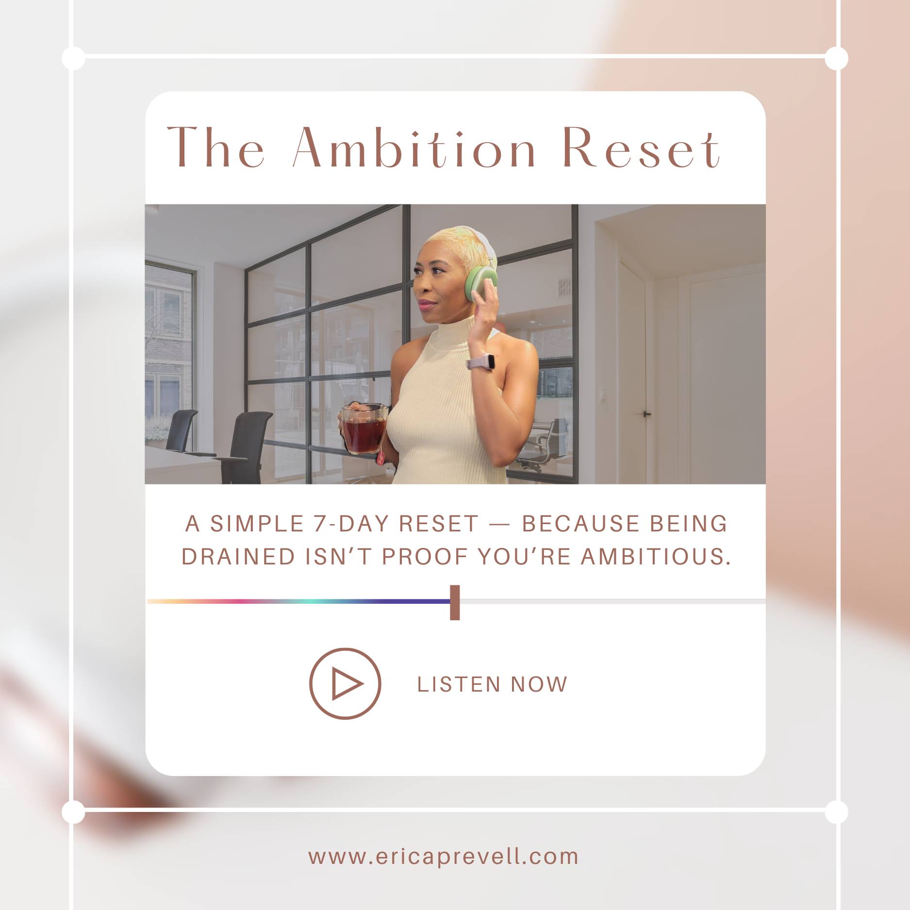 The Ambition Reset is a 7-day guided audio experience for ambitious women professionals, entrepreneurs, and leaders without kids at home, who are ready to stop running on empty.